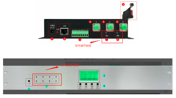 ②查看從終端防區包熔回來插入設備A、B光接口的尾纖是否有出光,正常應該要看到閃爍紅光。(這裏若A、B尾纖光纖接頭看不到回光則檢測尾纖熔接的光纖是否有回光,若有則重新熔接尾纖)
